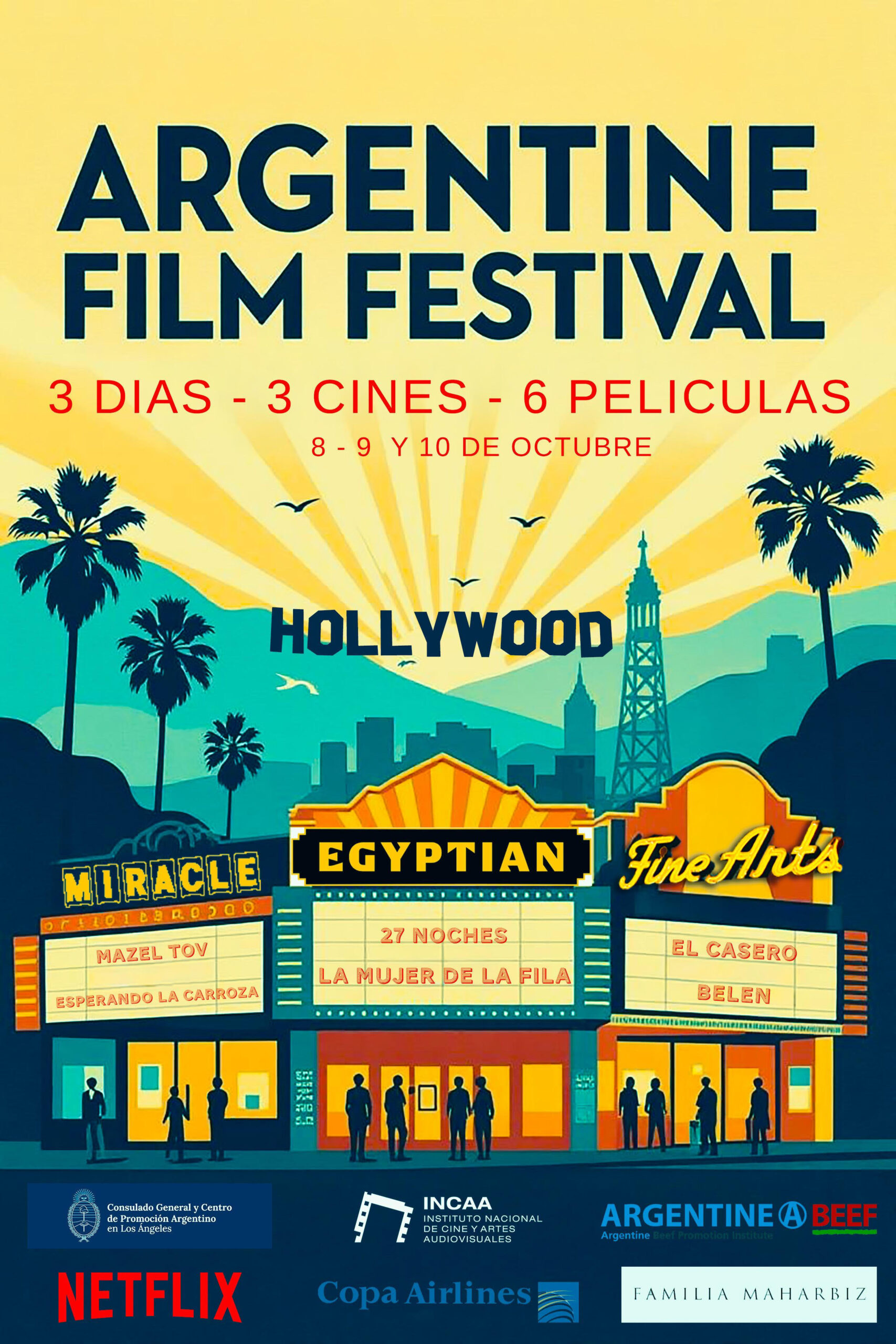 El Argentine Film Festival está organizado por el Consulado General y Centro de Promoción Argentino en Los Ángeles con la colaboración del INCAA y el Festival Internacional de Cine de Mar del Plata y cuenta con el auspicio de Netflix, Copa Airlines, Familia Maharbiz e IPCVA/Argentine Beef.
